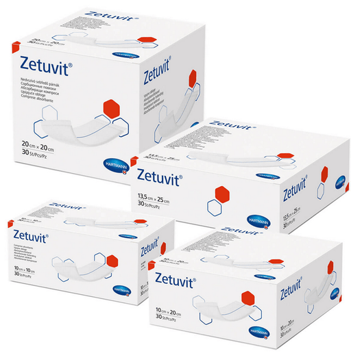 Zetuvit absorberend kompres Zetuvit absorberend kompres is een sterk absorberend kompres, bestaande uit vier op elkaar afgestemde materiaallagen: e...