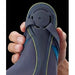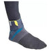 - Zet de voet in 90 graden en breng de versteviging aan de binnenzijde van de enkel in positie achter de enkelknobbel door het bandje met één blauwe markeerstreep op spanning te brengen en te sluiten.