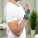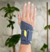 2. De elastische band wordt rond het polsgewricht op spanning gebracht en met de klittenbandsluiting gesloten. Door de gesp is de elastische band gemakkelijk strak te trekken.